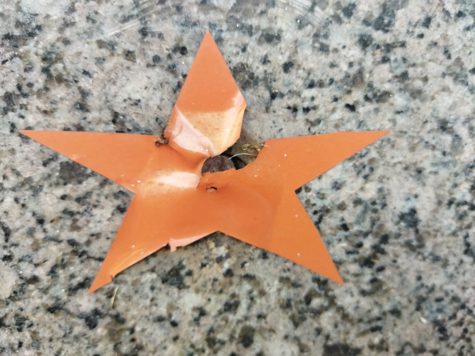 Но есть одна странность, которую обнаружил корреспондент «Курских известий». На гранитных плитах кто-то зачем-то разместил красные звезды из самоклеющейся бумаги.