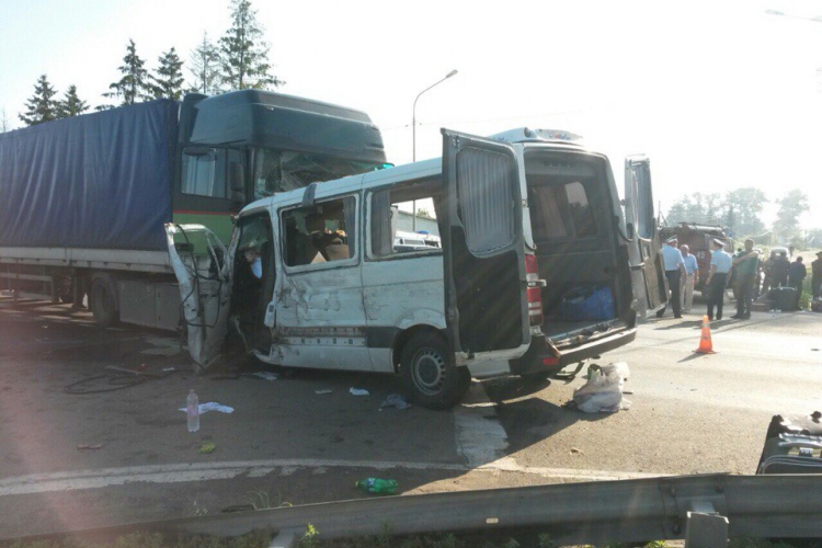 Водитель и четыре пассажира погибли на месте. Ещё 7 человек с различными травмами были доставлены в медицинские учреждения. Источник добавил, что оба автомобиля имели украинские номерные знаки.