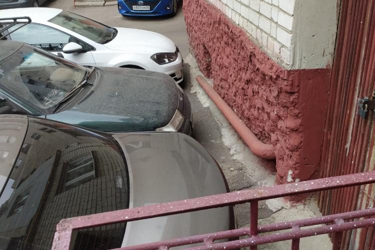 Жильцы дома на ул.Семеновская в Курске спорят за места для машин и клумб