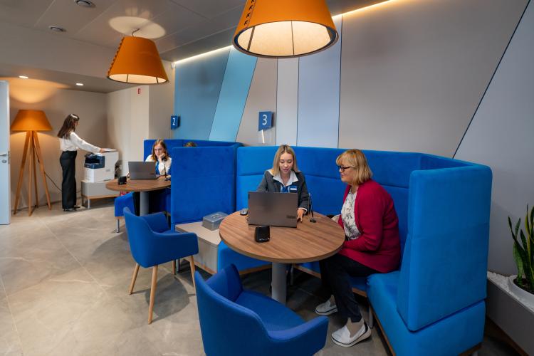 В этом отделении ВТБ будет осуществляться обслуживание клиентов массового сегмента. Здесь можно заказать кредитную или дебетовую карту, открыть вклад или накопительный счёт, выбрать страховку, получить кредит наличными или оформить заявку на ипотеку и автокредит. За картой пришла сюда и Людмила.