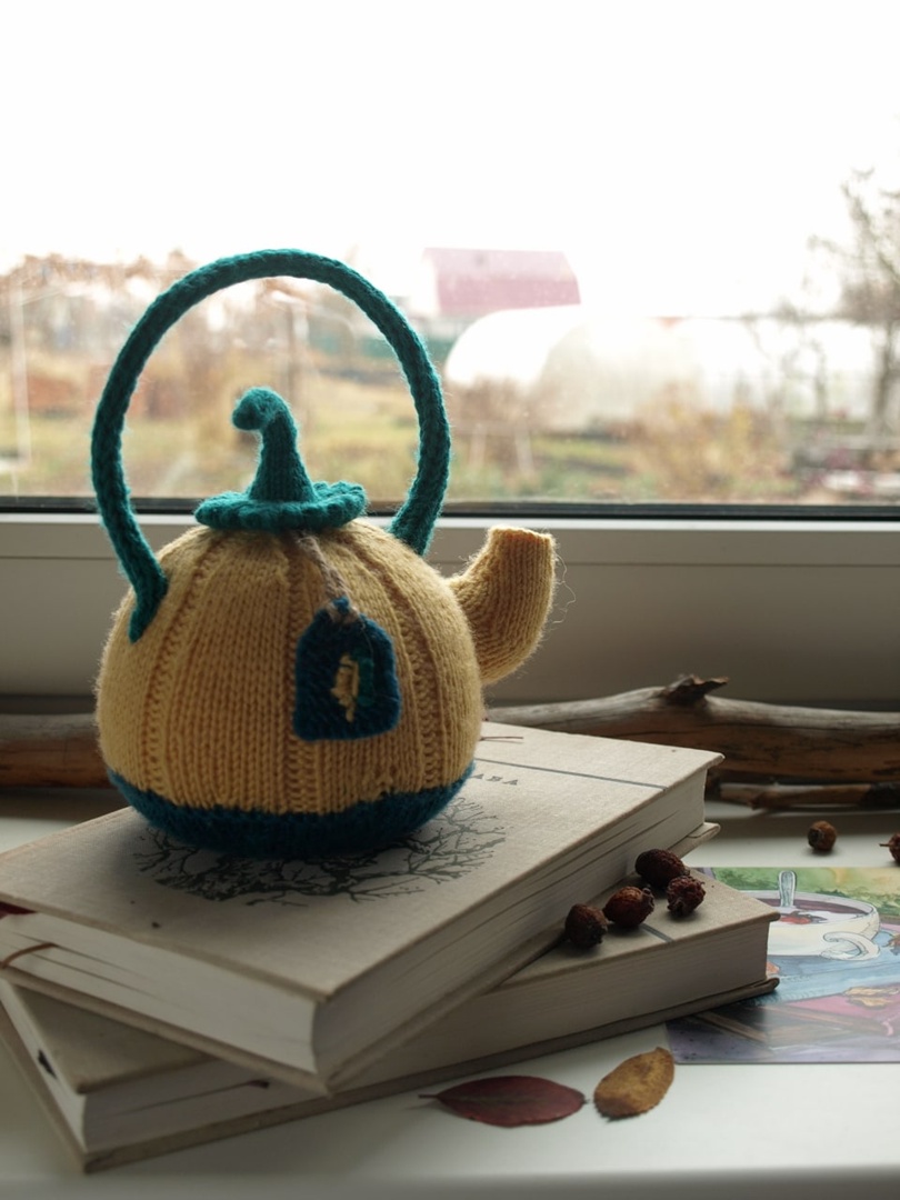 Ольга Степанова рассказала, что начала вязать свои первые игрушки, когда ушла в декрет. Это были погремушки и пледы, связанные с помощью крючка. Но довольно быстро мастерица поняла, что более близки ей фигурки, связанные спицами. Первой игрушкой, которую Ольга связала спицами уже будучи взрослой, был чайник-тыква.