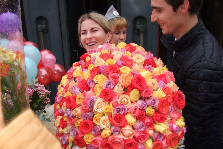 Земляки чемпионку встречали с оркестром, громкими овациями и, конечно, бесчисленным количеством цветов. Приветствия сопровождались фотосессиями и автографами. Поздравить победительницу на вокзал приехали родственники, спортсмены, курчатовская школа фехтования вместе с воспитанниками в полном составе, представители СМИ, комитета по спорту и администрации региона, болельщики, а также олимпийская чемпиона 2008 года Евгения Ламонова.