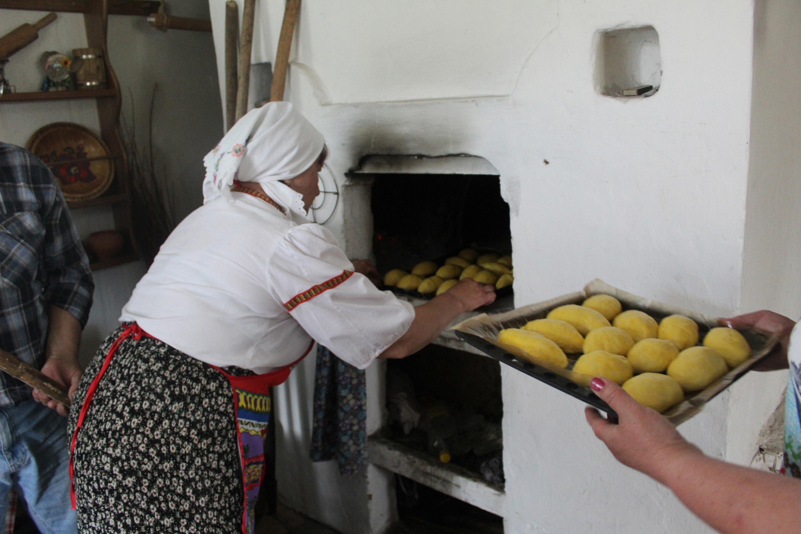 Как ещё рассказать о традициях и обычаях русских домохозяек? Мастерицы Плёховского центра фольклора решили на деле продемонстрировать, как печь пироги в настоящей русской печи. Они собрали жителей села и на их глазах замесили тесто. Пока женщины в народных костюмах готовили начинки, они с удовольствием делились секретами приготовления и традиционными рецептами, передаваемыми из поколения в поколение.