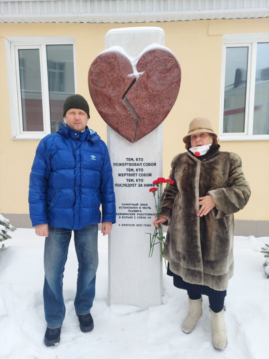 (На фото: Людмила Георгиевна с сыном у памятника медикам, боровшимся с ковидом)