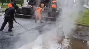 Однако и к новому подрядчику возникли вопросы. Днём 19 мая во время сильного дождя дорожники уложили асфальт прямо в лужи, что засняли общественники. По их словам, от горячего асфальта вода в лужах вскипала. «У нас есть профессиональный дорожник, который сразу сказал, что на этом участке асфальт не «схватится», его надо перекладывать», – рассказал журналисту «Курских известий» руководитель железногорского Центра общественного контроля (ЦОК) Юрий Милюков.