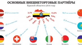Внешнеторговый оборот нашего региона за 9 месяцев 2016 года составил 686,9 млн. долларов США. Из них 334,8 млн. – экспорт, ещё 352,1 млн. – импорт. Партнёрами были 85 стран. За тот же период 2015 года, по данным администрации Курской области, внешнеторговый оборот составил 632,7 млн., на долю импорта приходилось почти 60%, а зарубежных партнёров было на 7 меньше. В основном наш регион торговал со Швейцарией (19,8% внешнеторгового оборота), Украиной (15,3%) и Китаем (13,5%), рассказали «КИ» в комитете по экономике и развитию Курской области. Также в топ-10 стран-партнёров вошли Беларусь, Германия, Казахстан, Италия, Словакия, Латвия и Нидерланды.