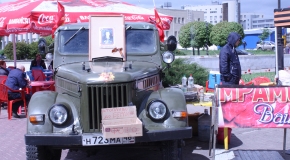 Всю дорогу участников сопровождали песни военных лет. Возглавляли шествие четыре ретроавтомобиля. Несколько участников надели военную форму. В гимнастёрках можно было увидеть и взрослых, и детей. В колонне были даже мамы, которые пришли на акцию с колясками.
