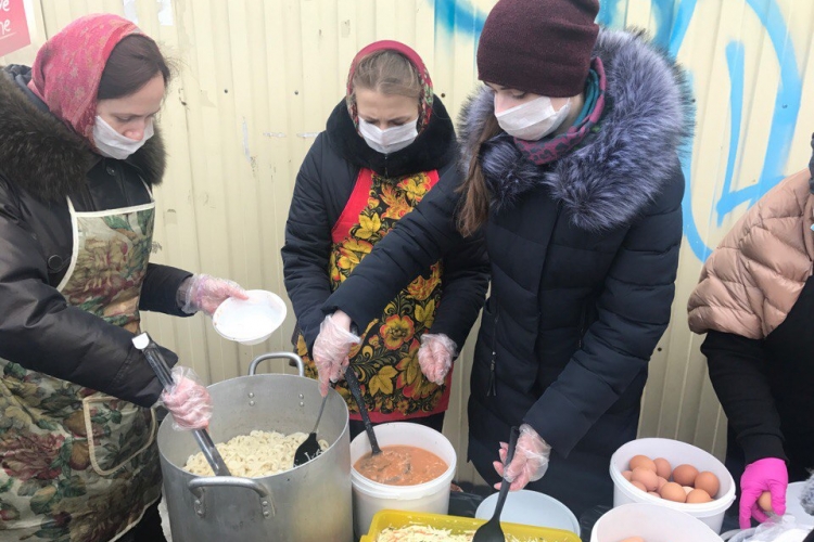 В Вербное воскресенье курские волонтёры покормили бездомных