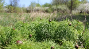 Очень скоро в степи появятся ярко-алые куртины пиона тонколистного, который введён в культуру и в садовых условиях чувствует себя хорошо.