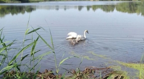 Курская область. Жители села Мелавка помогли паре лебедей с птенцами