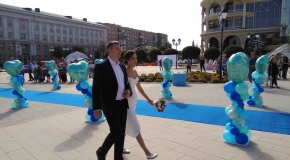 Сегодня на Театральной площади проходят мероприятия, посвященные Дню города. Для курян и гостей города подготовили флешмоб молодоженов. 25 супружеских пар поздравили с началом семейной жизни. Пожелания счастья и семейного благополучия семейные пары получили от глав региона и областного центра.