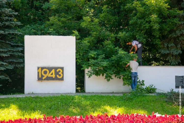 29 июля предприниматель вместе в ветераном примерили одну из звезд из металла, покрытую полимерным составом, на будущее место крепления. А уже сегодня, 31 июля, он, вместе с командой курян-активистов за 4 часа заштукатурили часть стены стелы, обрезали сухие ветки, навели порядок на площадке и установили новые звёзды,