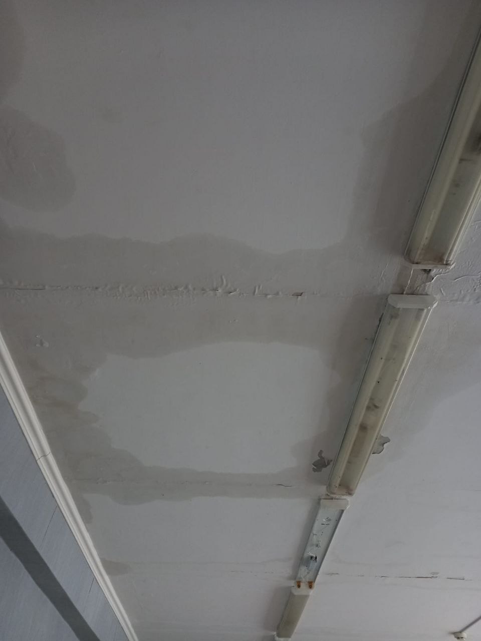 Сейчас в школе катастрофа. Здесь очень сырой, влажный воздух. Крыша протекла вся, ремонт продолжается, вчера снимали плиты, сегодня их заливает дождем, швы между плитами разбухали от воды.