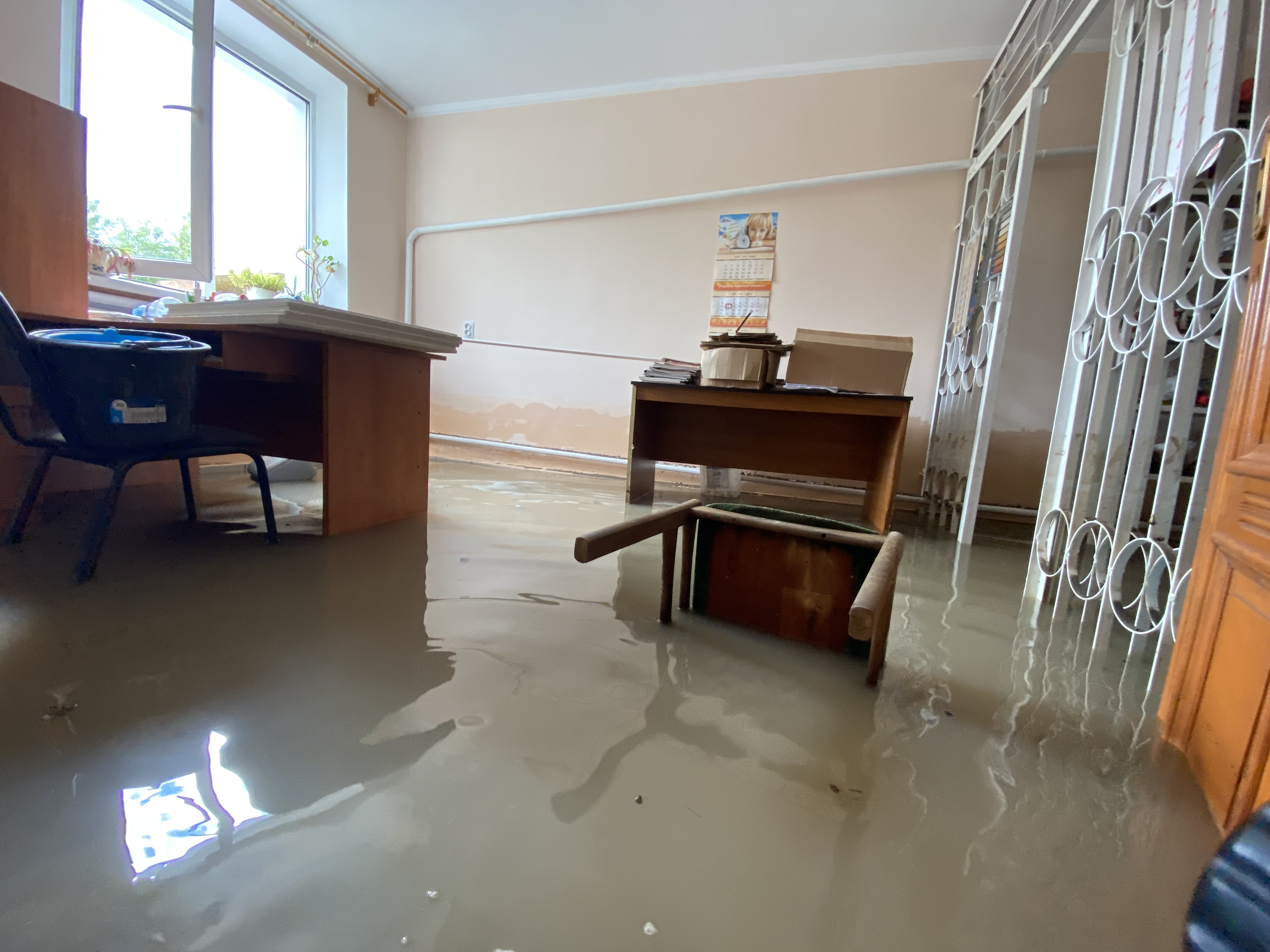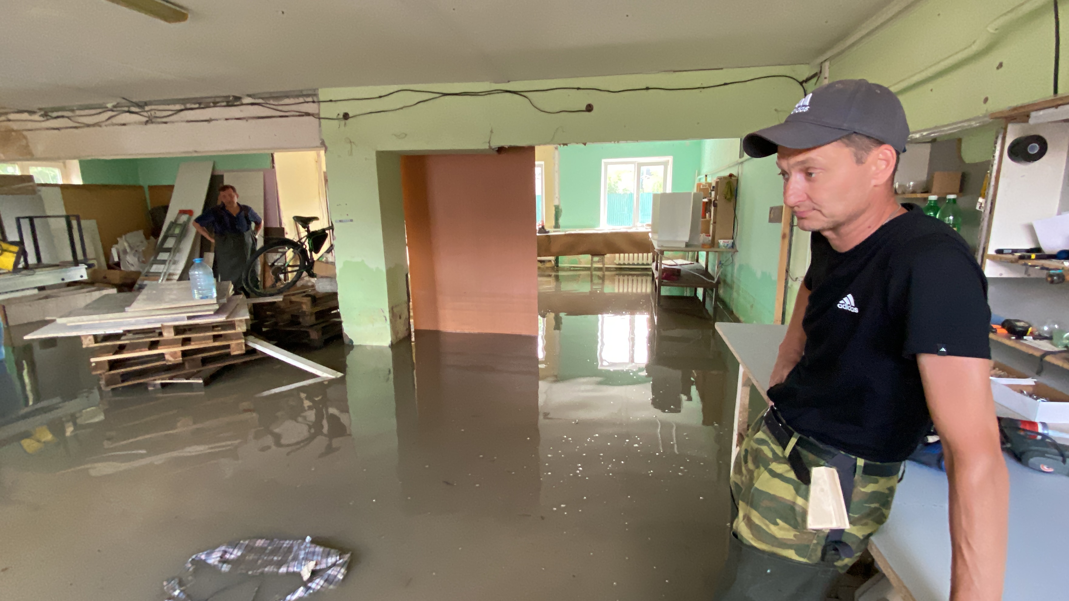 – В декабре-январе здесь сделали ремонт. Теперь его нет. Два компьютера не спасли, не подлежат восстановлению, – показывает пустые столы Дмитрий. – Воздух спёртый, чувствуете? Мебель и оборудование напитались влагой. Можно ли будет потом использовать, непонятно.