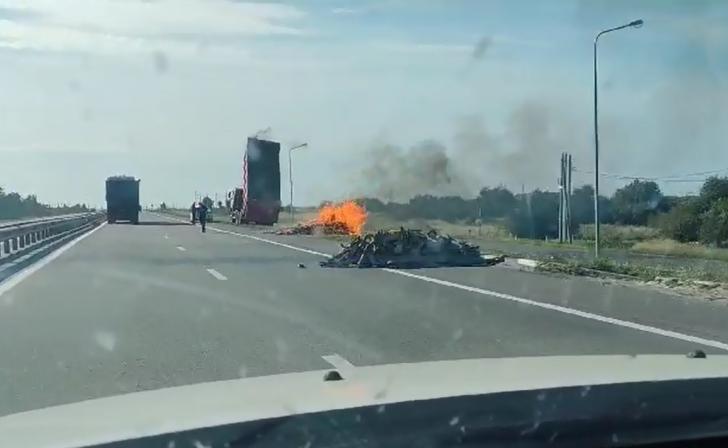 Как сообщает очевидец, на трассе по направлению к Журавлинке грузовик стоит на обочине рядом с большим костром.